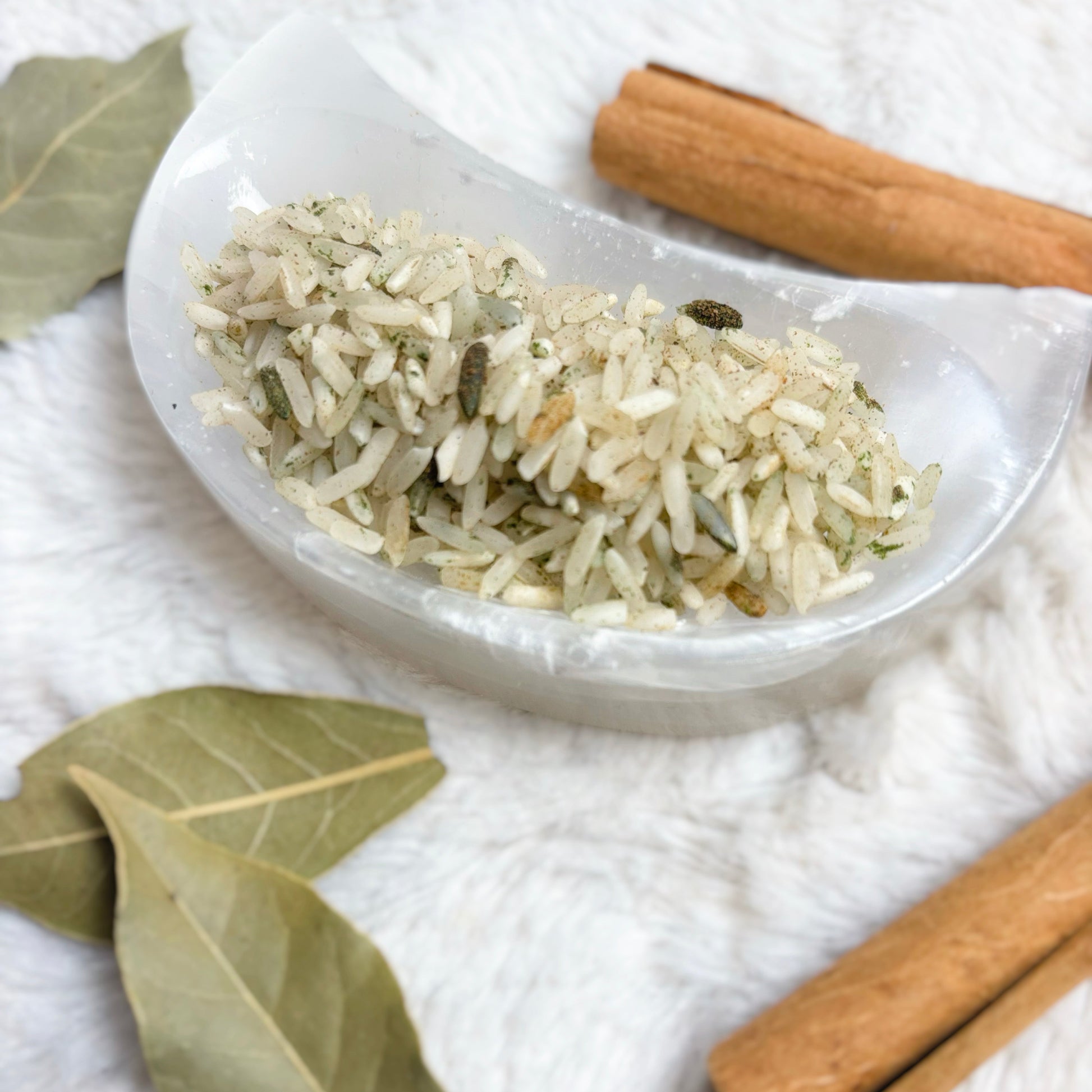 Rice | Coloring | Ceylon Cinnamon | Cinnamon + Clary Sage + Frankincense + Orange + Patchouli + Sandalwood Essential Oils